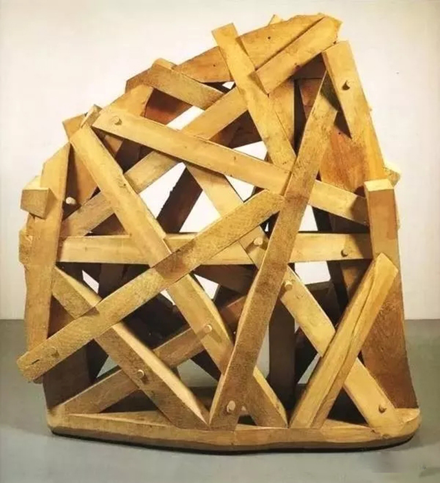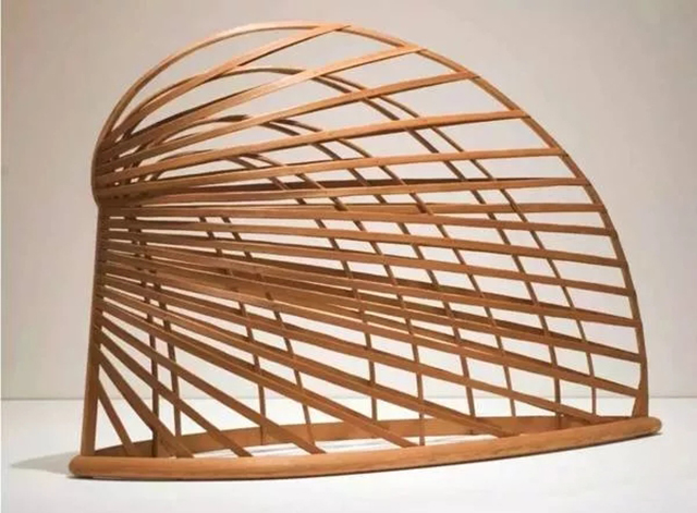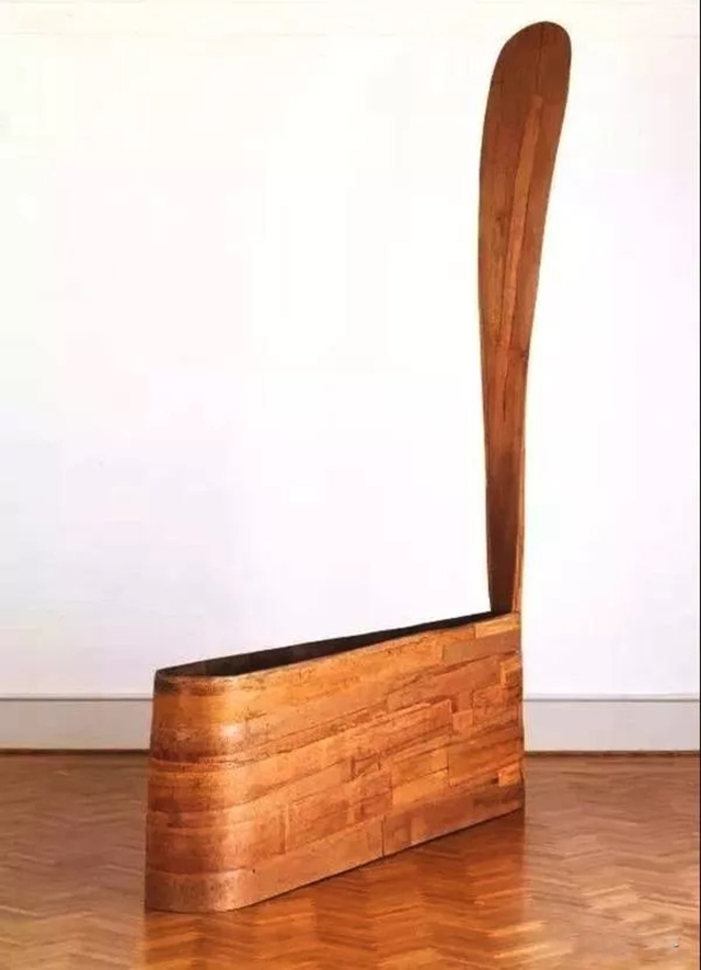 普耶爾首先引起人們注意的一件作品是1985年的鋼木雕塑《魔咒》(The pell)。我們震驚于作品的曲線之美、圓錐的優(yōu)雅尖細(xì),以及矩形開口的變化多樣;平板木條擁有細(xì)細(xì)的條紋,其充實(shí)的質(zhì)感讓“木條”看起來像是一個(gè)籃子。對(duì)編制籃子的影射暗示手工藝和匠人,進(jìn)而暗示了人的存在。我們可以感受到這件物品是由手工精心制造,我們還能感到普耶爾的藝術(shù)背景不僅僅來自非洲,雖然他可能曾在那里見到過手工精湛的器皿和儀式用木器;他的藝術(shù)靈感還來源于瑞典,因?yàn)樗谀抢飳W(xué)習(xí)過木工;此外還有日本,那里具有制作功能性和裝飾性木器的悠久傳統(tǒng)。然而,僅僅由于普耶爾是一名美國黑人,就認(rèn)定其藝術(shù)參照了非洲藝術(shù)的說法本身就是個(gè)錯(cuò)誤。他的雕塑與民族身份和政治無關(guān),只是反映出作者在多種文化中的廣泛體驗(yàn)。通過以木材作為藝術(shù)媒介的方式,他得以將這些體驗(yàn)熟練、完美地表達(dá)出來。
