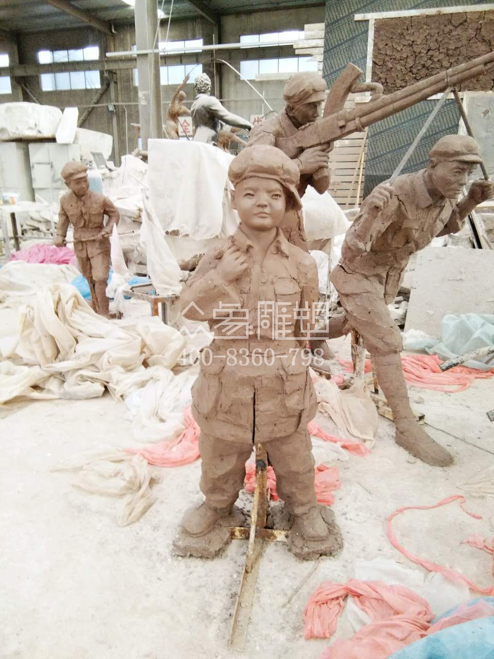 小紅軍泥塑塑造階段。
