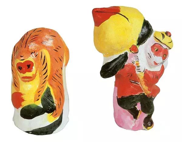 隨著泥塑的品種逐漸增多,有“老虎”“獅子”“猴子”“小狗”“小貓”“雞”“鴨”等動物,也有“白蛇傳”“孫悟空”“牛郎織女”等傳奇故事,并且涂以各種顏色,使其生動活潑。泥塑漸漸展成為一種獨立的手工藝術品。